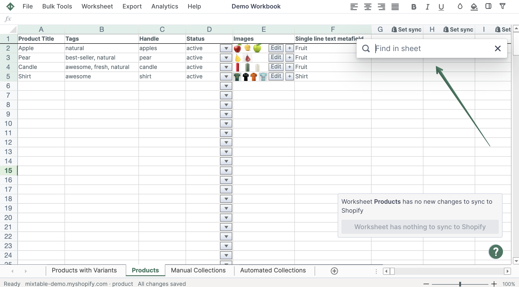 Best of all, you can sync changes back to Shopify with a single click. Find out more about the Mixtable suite of products here.