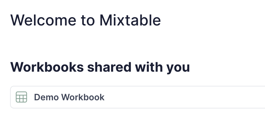 Enter the email address of the collaborator you want to share the workbook with. Please note that a valid Mixtable user with that email address needs to already exist in Mixtable before you give access.