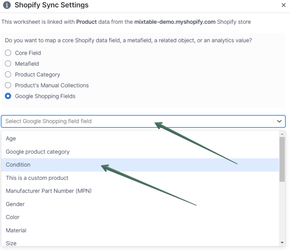 Solution: New products won’t come automatically with the default values, but you can easily copy-paste them within the spreadsheet editor. Here, you can find details about bulk managing Google Shopping fields with Mixtable.